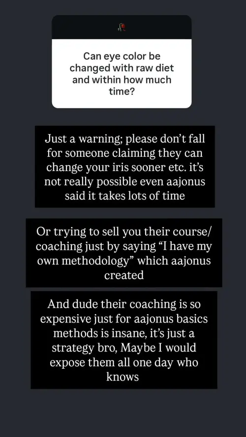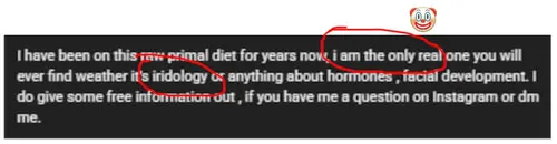 Bruce (not his real name) is a scammer from India of the worst kind, who lies about having exclusive Aajonus information that was never published, while he uses AI to write his posts and do his paid iris readings for him, and who abuses people who question him or expose his lies by threatening them with criminal actions, doxxing, account banning, and so on. He is an unhinged individual, be careful if you interact with him in any way.