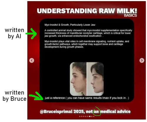 Bruce pretends he is not primal or following Aajonus, as if it excuses his garbage content full of mistakes and made by AI.
