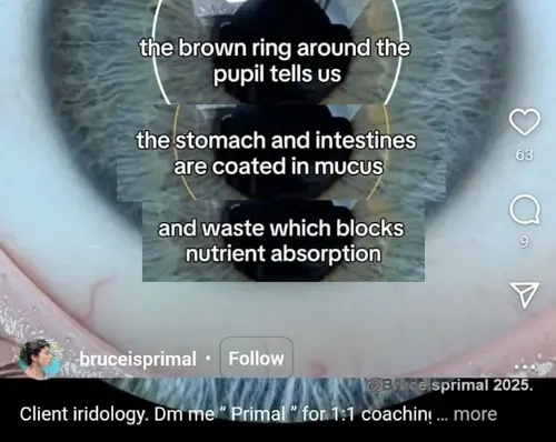 Bruce also posted an iridology reel on Instagram.